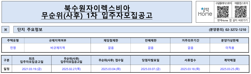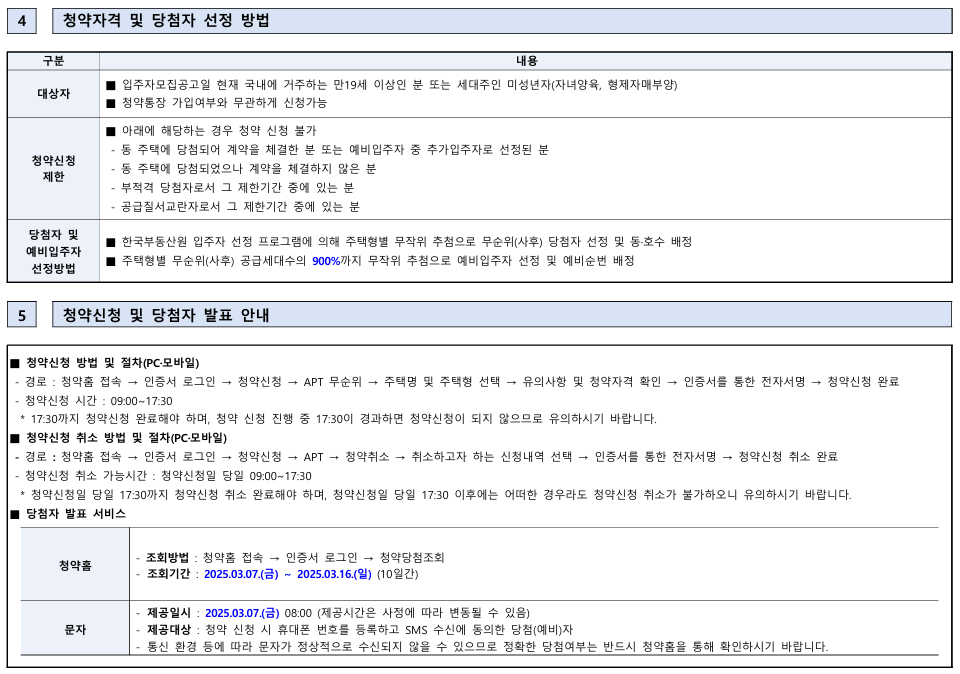 - 청약 접수: 2025년 3월 4일 (화) 오전 9시 ~ 오후 5시 30분 (청약홈에서 인터넷 신청)