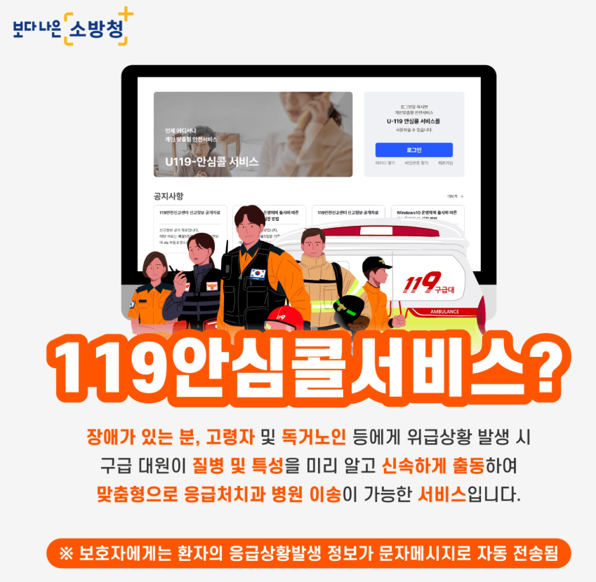 119 안심콜 서비스는 응급 상황 발생 시 소방청 119 신고 시스템과 연계하여 신속한 구조·구급 서비스를 받을 수 있도록 지원하는 제도입니다. 특히 고령자, 장애인, 만성질환자 등 응급상황 발생 시 빠른 대응이 필요한 대상자에게 유용합니다. 그럼 지금 부터 119 안심콜 서비스에 대해서 알아 보겠습니다.