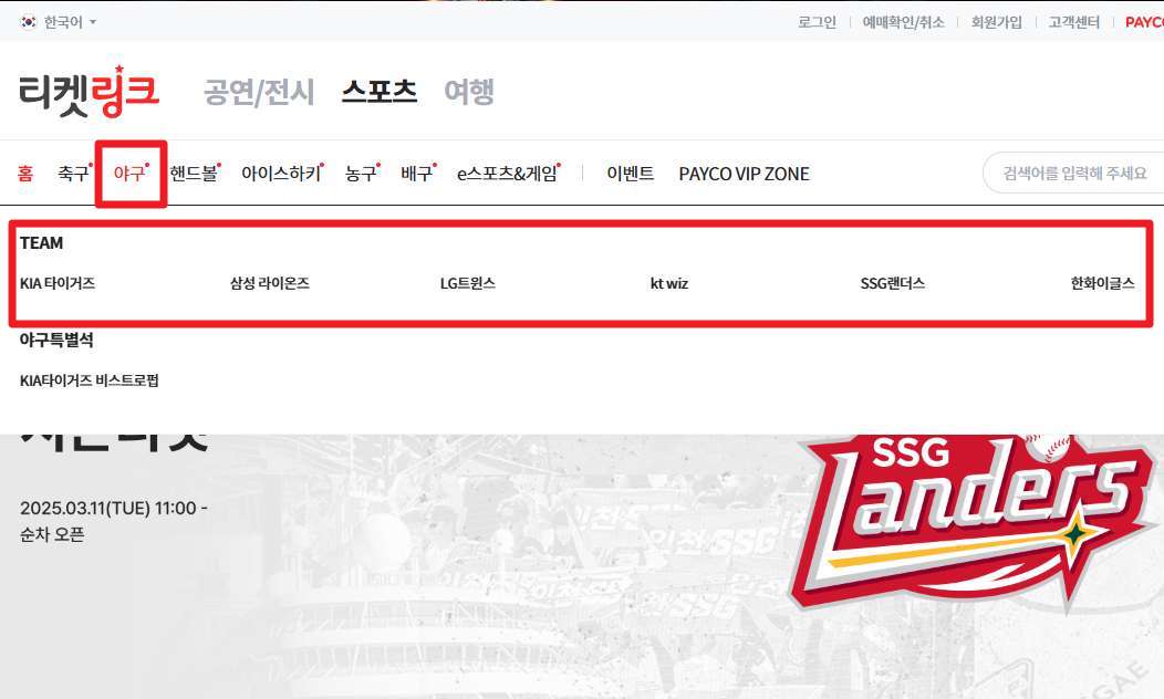 | SSG 랜더스 | 인터파크 티켓 |